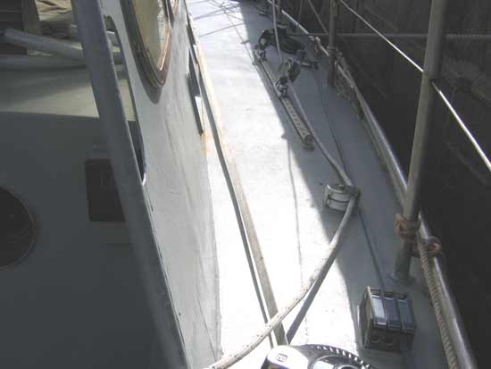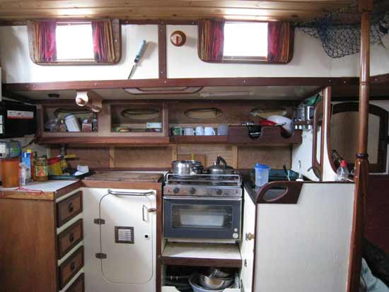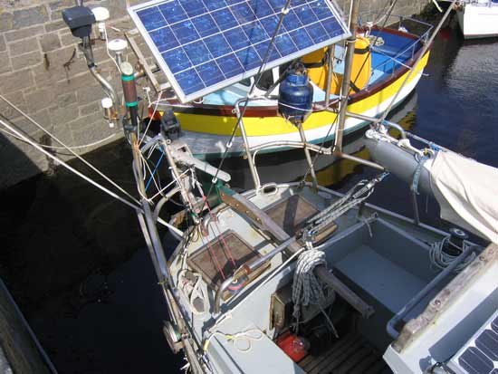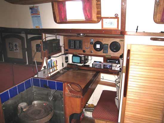 Her rudder is transom hung which makes for safety at sea and also for ease of self steering. She is equipped with a Hydrovane self steering wind vane system but can also be made to self steer on many points of sail simply by careful attention to sail trim and balance. She has a wide flush deck, many handholds, substantial stanchions, lifelines and granny bars near the mast which all make for safety while offshore. There are no holes in the deck. All gear (mostly stainless steel) has been attached to stainless steel backing plates which are themselves welded directly to the hull. This was done to stop any ingress of moisture and to make for easy maintenance. The hull, deck and insides of the craft were all shot blasted professionally and epoxy primed immediately to prevent any oxidation of the steel. After two coats of epoxy the interior was sprayed with expanded polyurethane foam which has resulted in an extremely dry interior. Books can even be left aboard in Ireland in winter!