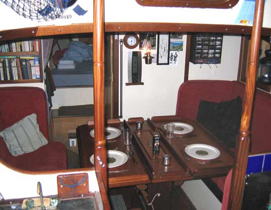 Accommodation consists of a large forecabin, heads, saloon with dining table, galley and navigation station and 2 aft cabins. There is ample wardrobe space and storage for foodstuffs, etc. She has 6 berths. One double berth in the forward cabin, 2 saloon berths and 2 quarter berths.