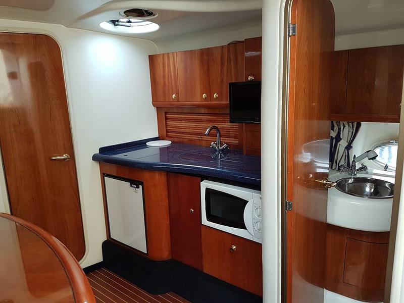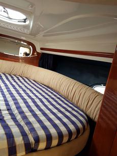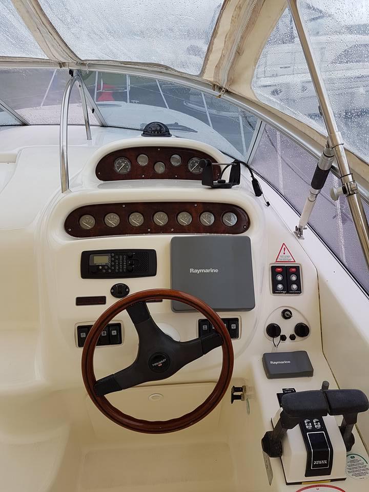 At her helm you feel in total control with all her instruments easily to hand including the Benett Trim Tabs, throttles & leg trim. The Cranchi Zaffiro 34 is a Master Class from this Italian yard in how to build a superior Sports Boat & this particular boat is in lovely condition & is a must to view.