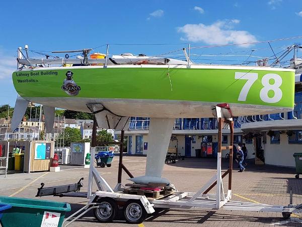 Mini Transat 6.50 Prototype No. 78 built in Capparos boat yard (South France) to a Fauroux design in 1992. Glass polyester sandwich hull with a fixed keel & 200L water ballast. Full professional refit in 2016 - this boat has been tested in tough offshore races since the refit with great success. CALL NOW to arrange viewing! Construction & Hull Keel refitted 2016 Top side paint removed, faired, primed and re-sprayed 2016 New bowsprit rotation system New re-designed forestay chain plate Chain plate re-fitted Carbon rudders reconditioned New bow crash box Forward foam re-glassed Mast step reconditioned, mast post added Water ballast tank reinforced New ballast intake, new valves and pipe work, reconditioned double action pump, quick transfer added, new electric ballast pump with external switch Most cleats, other deck fittings, stantion and pulpit refitted Anderson Winches fully serviced 2No stern mast for solar panel & antenna New lee cloth/ stacking system Inside sanded and repainted New battery box New instrument display swivel New secured stern hatch Carbon out triggers New cleats & blocks Mast & Rigging Aluminium mast & boom replaced in 2005 New forestay, D1, V1, starboard 1st floor spreader All new halyards and sheave boxes New SK99 baby stay, split backstay, runners & check stays New runner setup with fine tuning New compact VHF antenna New LED mast light New CV3F ultrasonic wind sensor+ST60 adaptor 100% rivets replaced with stainless steel New mast foot Boom rivets all redone, out-haul system redone Adjustable Lazy jack system (kiteline) New reef 2 line Electrics & Electronics 2 sealed batteries 110Ah New battery switch All rewired from scratch New fused switch board New radar detector antenna New combined AIS/ GPS/ DSC VHF with NMEA GPS Antenna New waterproof external speaker 3No 12v fused socket 2No solar panel 12V sockets Solar panel charger/controller 1No 50W solar panel ST60 wind, depth Autohelm bidata ST4000+ auto pilot 2No Raymarine fluxgate compas Raymarine Gyro plus New Raymarine tiller+waterproof storage Raymarine Smart pilot X5 (to be serviced) Sails New storm jib, 1 reef, waterproof bag New code 0, ZL01, anti-torsion rope, special code 0 bag New CX0 Selden furling system New Polykote RSQ square top mainsail (90% complete) New boom cover 2005 Mylar/taffeta one side No1, 1 reef, carry bag, just ok condition 2005 Mylar/taffeta one side No3, 1 reef, carry bag, in one piece 2004 max spinnaker runner 2005 max spinnaker reacher 2005 Code5 , mylar, bag, anti-torsion rope, ok condition 2005 Polykote mainsail, just ok condition Safety Gear New jackstays Horse shoe buoy+wistle+sea anchor+light Through line 6 man liferaft bag to be serviced Spare tricolour lights Anchor signal Boat hook Oar 8kg anchor+chain+line, special carry bag Plastimo compas+light In board single action pump New EPIRB New MOB rescue sling Additional Information New spinnaker and jib sheets 2No winch handle 6No cockpit rope bag Extinguisher Barometer & clock 2No fenders Lines Trailer just good as cradle, can be serviced and a second axle can be easily added to make it road worthy. Survey 2016 available Disclaimer Disclaimer